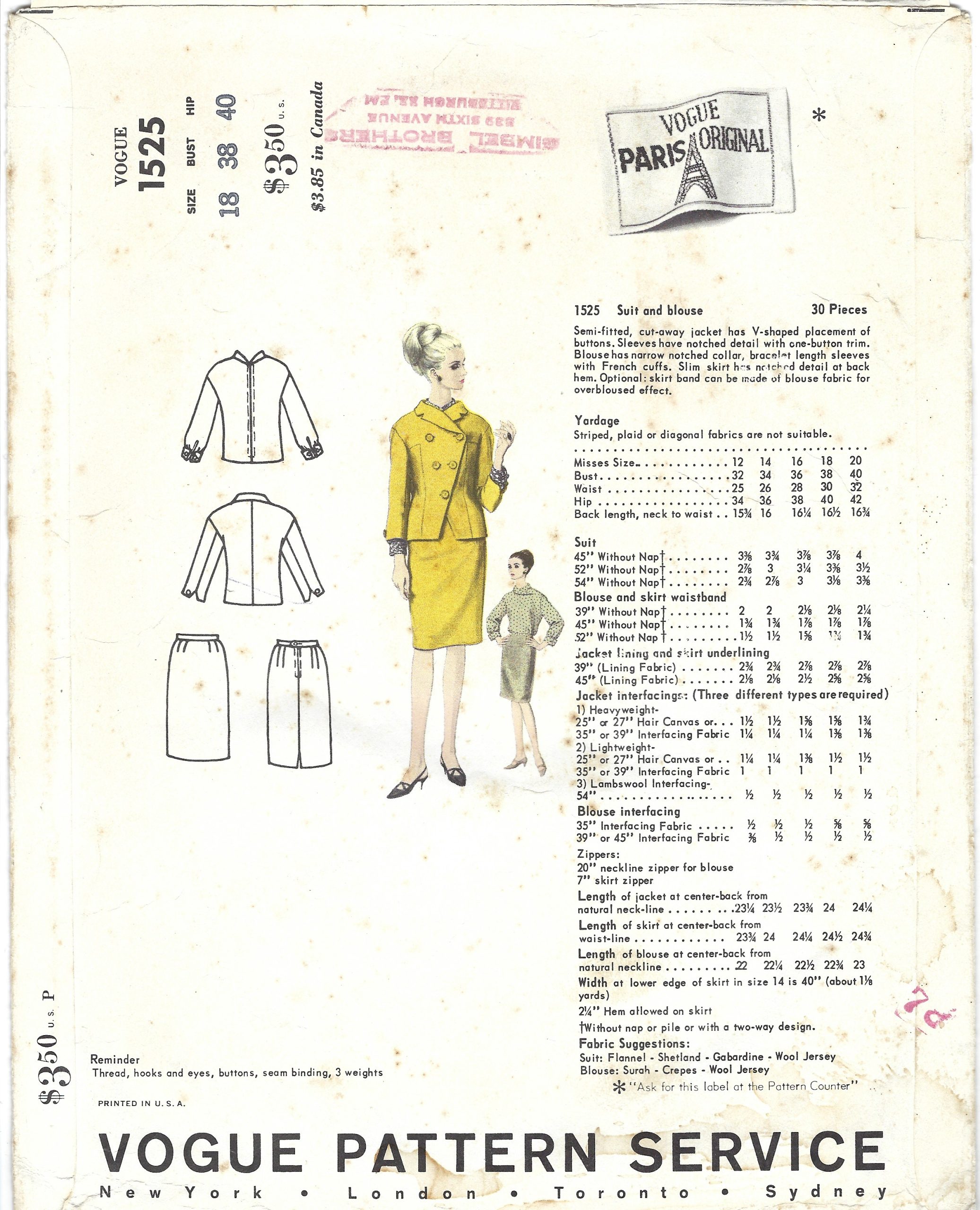 ~ Details: SUIT – SKIRT, BLOUSE and JACKET from VOGUE PARIS ORIGINAL, Designed by MOLYNEUX