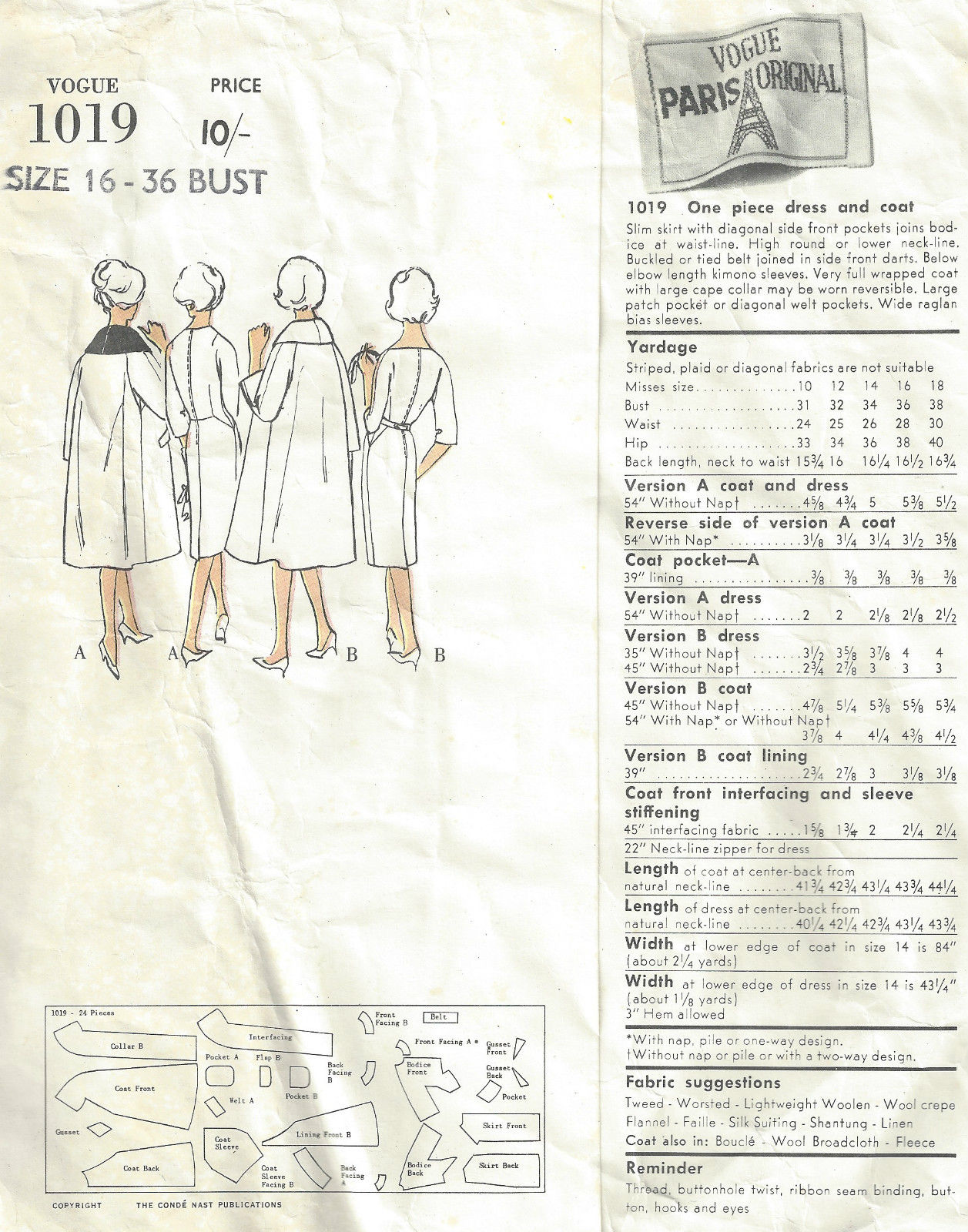 ~ Please Note: ~ You are buying a ‘Professional Digitally Reproduced’ copy of this sewing pattern. Copied from the original sewing pattern. Produced in Full Scale Pattern Pieces ready to cut with full instructions included. Reproduced on high quality 50 gm paper with black ink, durable and easier for reuse.