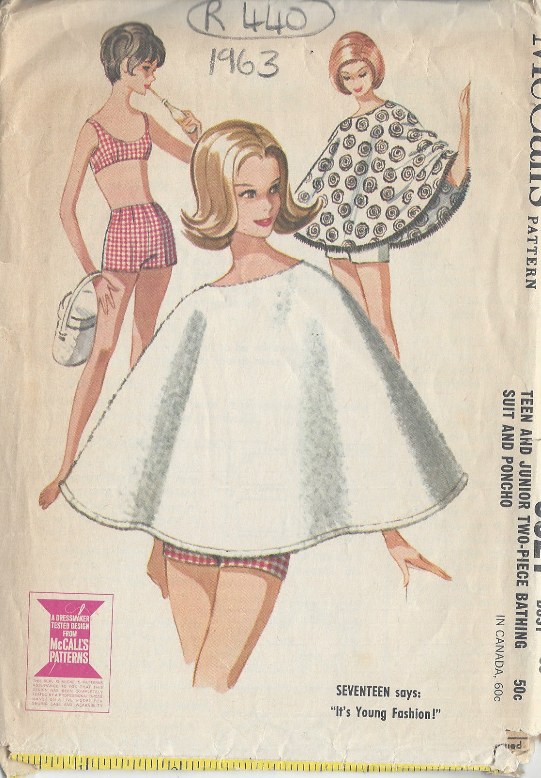 1963 Vintage Sewing Pattern B30″ BATHING SUIT & PONCHO (R440)