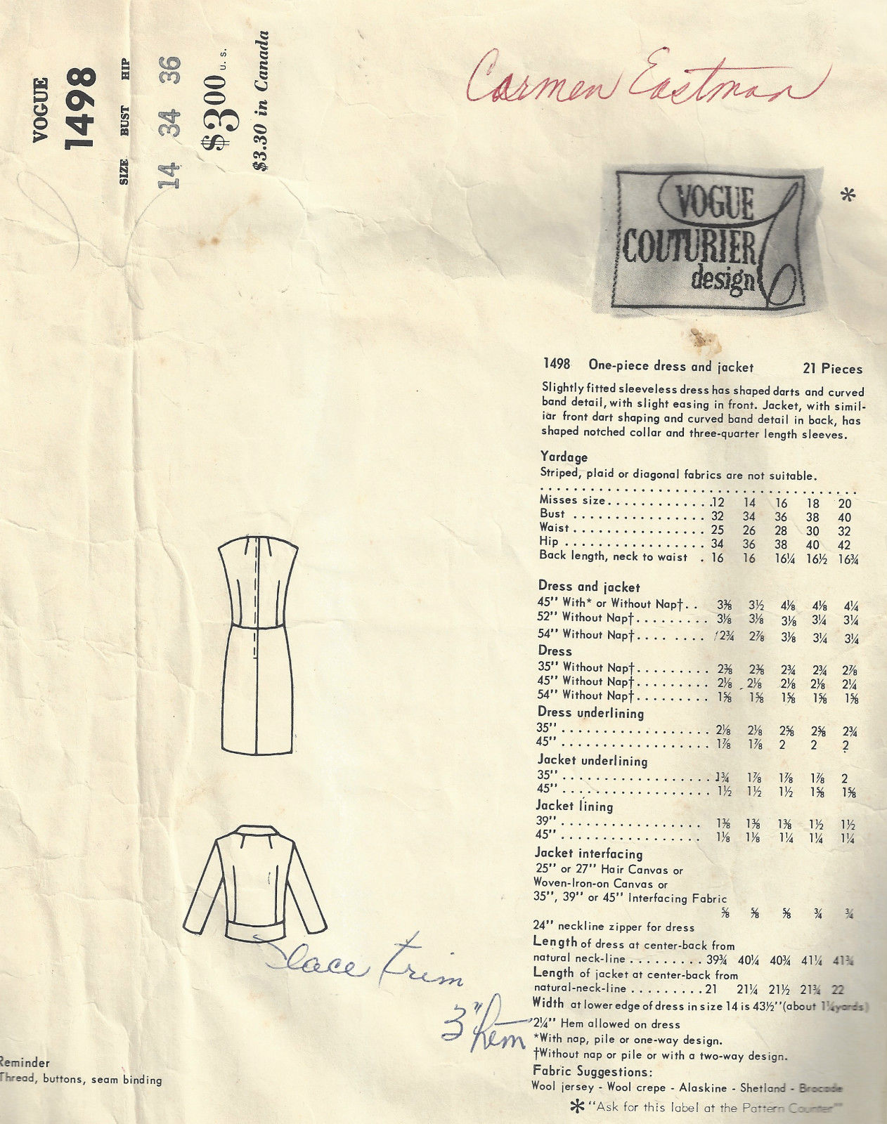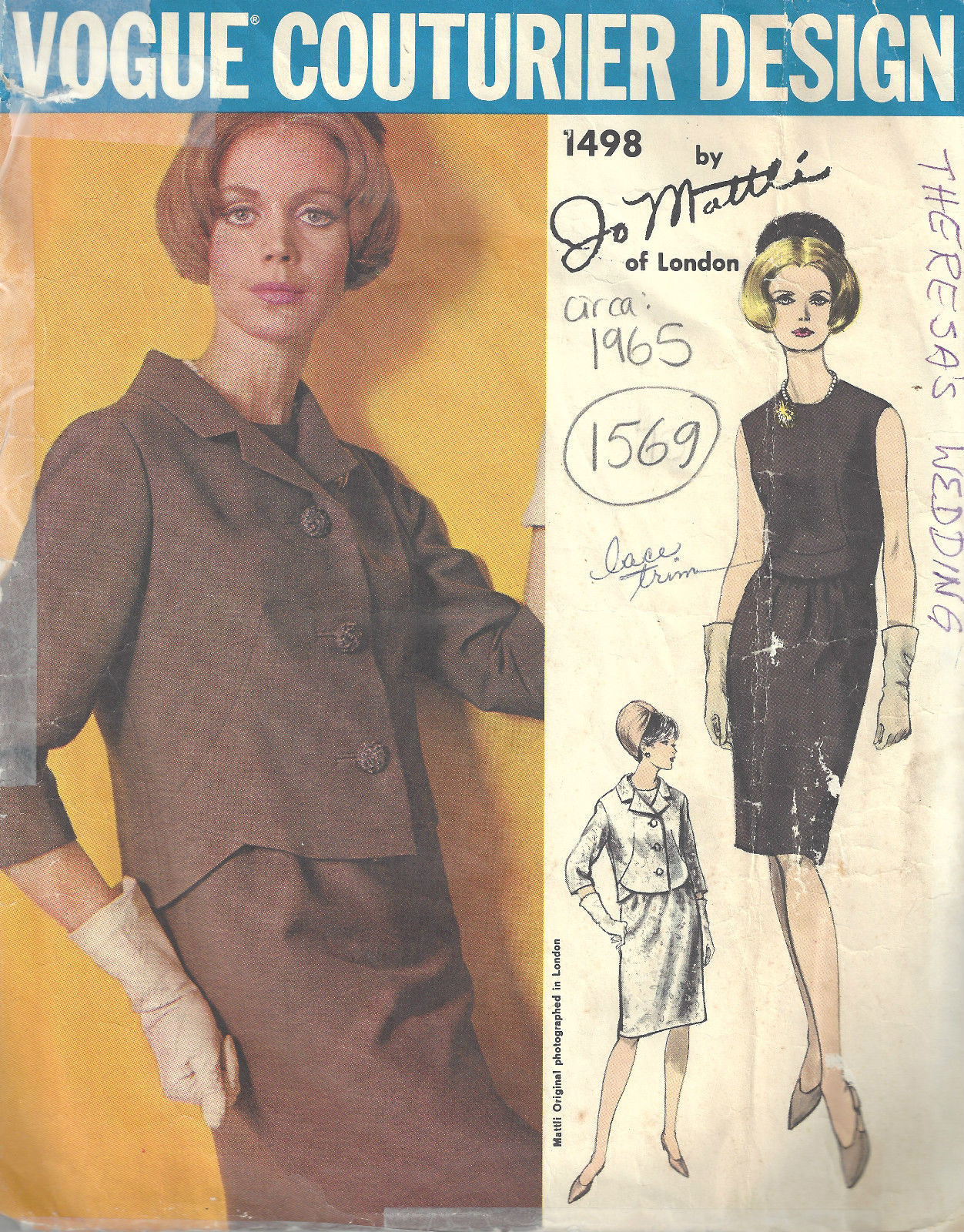 1965 Vintage VOGUE Sewing Pattern B34″ JACKET & DRESS (1569R) Jo Mattli of London