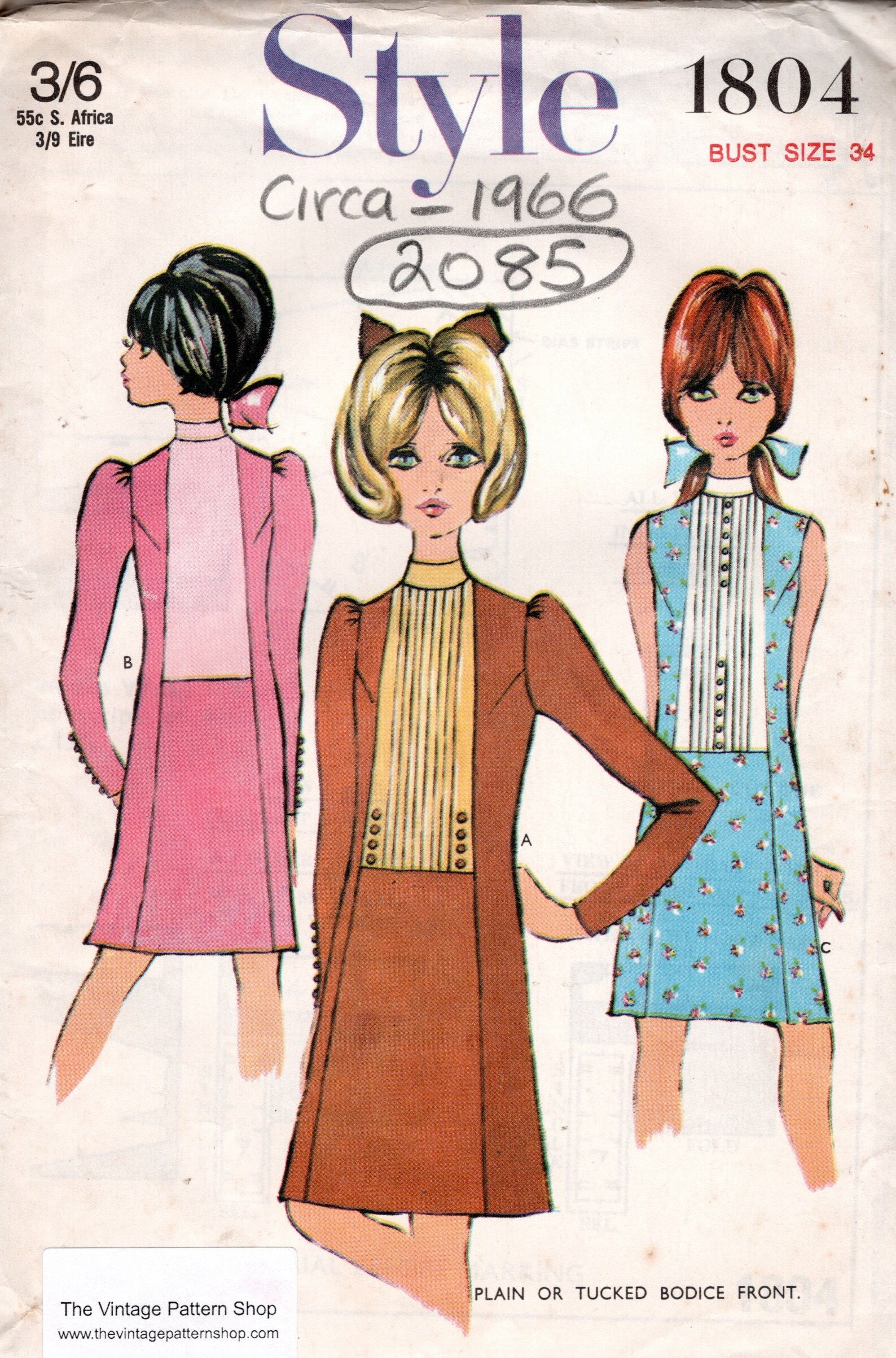 1966 Vintage Sewing Pattern B34″ DRESS (2085) Style 1804