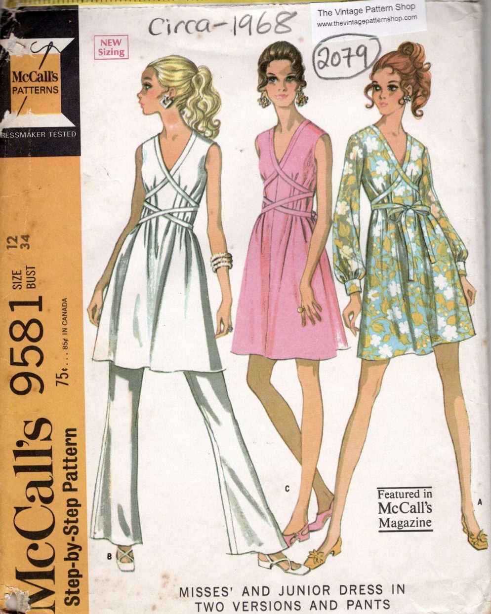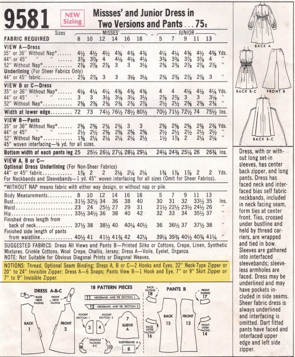 1968 Vintage Sewing Pattern Bust: 34″ DRESS & PANTS (2079) By McCalls 9581