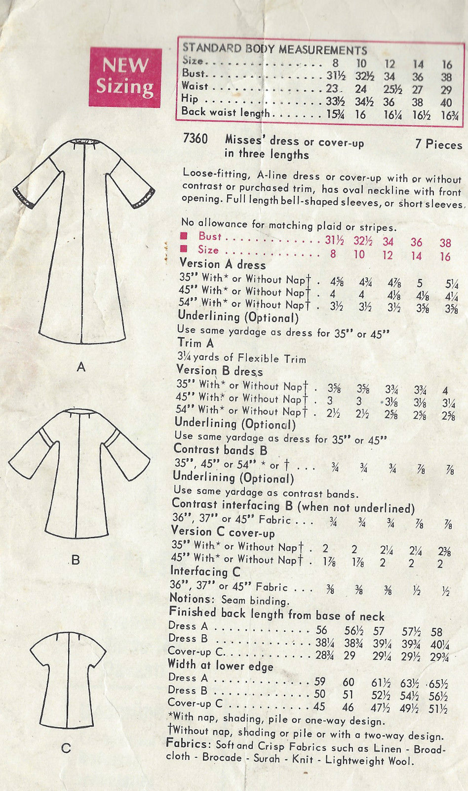 ~ Details: Three style variation CAFTAN STYLE DRESS COVER-UP by VOGUE