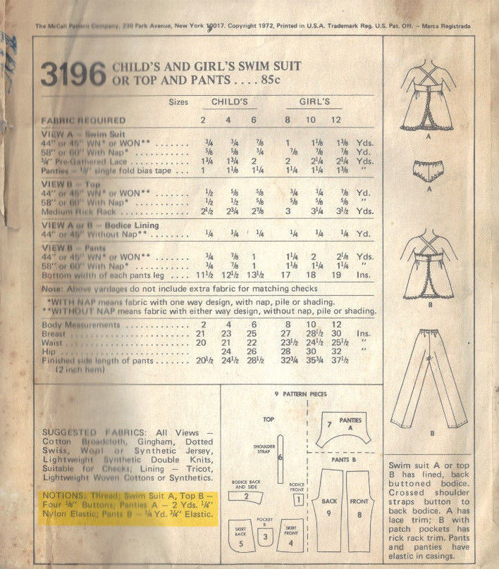~ Details: SWIMSUIT, TOP and PANTS