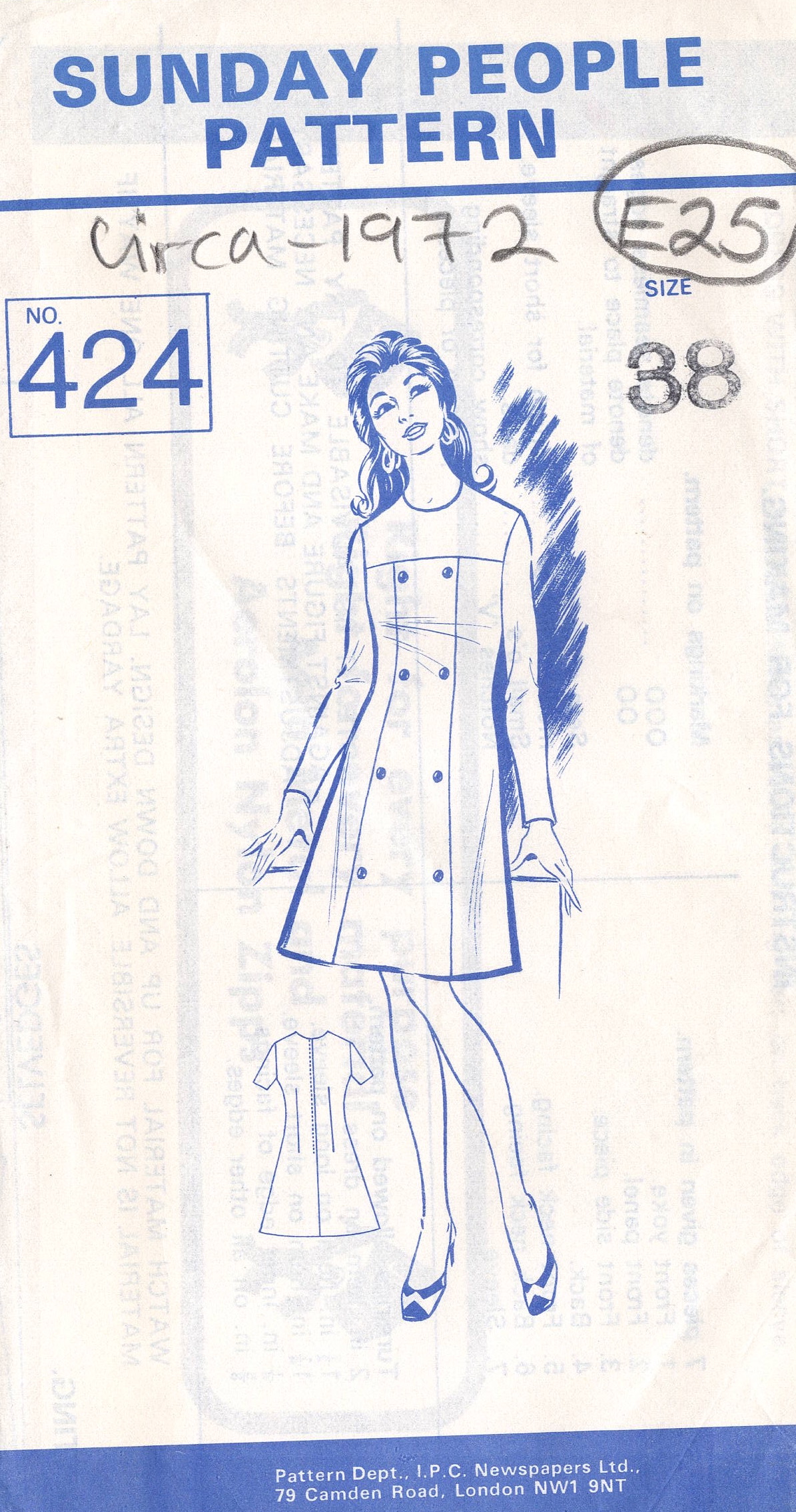 1972 Original Vintage Sewing Pattern (E25)