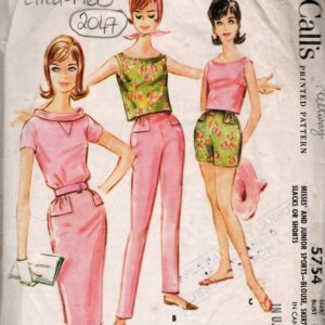 1960 Vintage Sewing Pattern Bust: 36″ DRESS Blouse Skirt Top Shorts Slacks/Pants (2047) McCalls 5754
