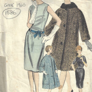 1960 Vintage VOGUE Sewing Pattern B34″ COAT DRESS & SCARF (1586)