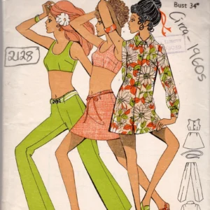 1960s Vintage Sewing Pattern Mini Shirt Dress, Mini Skirt, Pants, Top B34in (2128) By Le Roy Weldons 9067 Barbara Hulanicki (Biba)