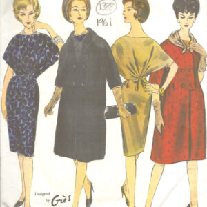 1961 Vintage VOGUE Sewing Pattern B32″ COAT DRESS & SCARF (1388R) By Gres