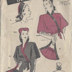 1940s Vintage Sewing Pattern B32″- 34″ CAPE, HAT & BAG SET (R132R)