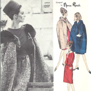 1963 Vintage VOGUE Sewing Pattern B34″ CAPE & DRESS (1344) By NINA RICCI