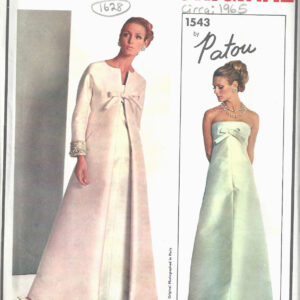 1965 Vintage VOGUE Sewing Pattern B34″ COAT & EVENING DRESS (1628) By PATOU