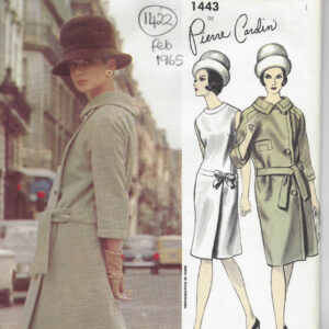 1965 Vintage VOGUE Sewing Pattern COAT & DRESS B32″ (1422R) Pierre Cardin