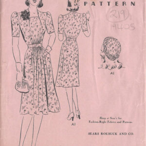 1940s Vintage Sewing Pattern B30″ DRESS & HAT-TURBAN (219)