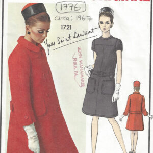 1967 Vintage VOGUE Sewing Pattern B34″ COAT & DRESS (1776) By YVES SAINT LAURENT