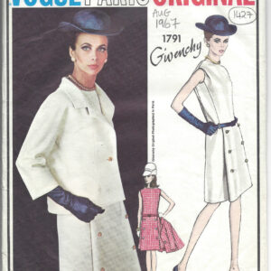 1967 Vintage VOGUE Sewing Pattern B38″ JACKET & DRESS (1427R) By Givenchy
