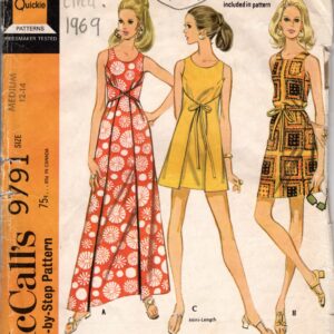 1969 Vintage Sewing Pattern B34″ – 36″ Pullover DRESS (1967) By McCall’s 9791
