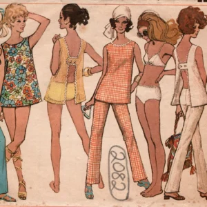 1969 Vintage Sewing Pattern B34″ Hip-Hugger Pants, Top & Bathing Suit (2082) Simplicity 8153