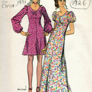 1971 Vintage Sewing Pattern B38″ DRESS (1926) By Simplicity 9446