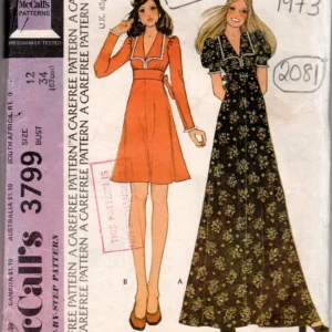 1973 Vintage Sewing Pattern B34in Dress (2081) By McCalls 3799