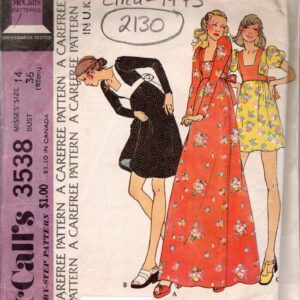 1973 Vintage Sewing Pattern DRESS B36″ (92cm) (2130) McCall’s 3538