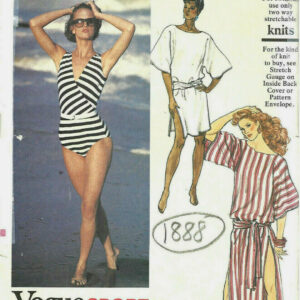 1980s Vintage VOGUE Sewing Pattern B36″ SWIMSUIT, COVERUP with BELT (1888) By Vogue 8654