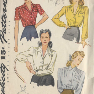 1940s Vintage Sewing Pattern BLOUSE B42″ (R274) By Simplicity 4139