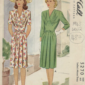 1943 WW2 Vintage Sewing Pattern B32″ DRESS (1487)