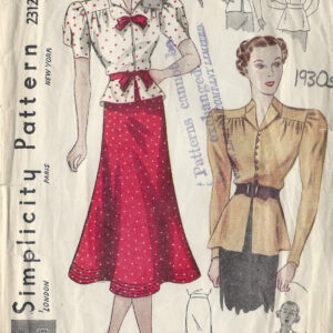 1930s Vintage Sewing Pattern B36in W30in SKIRT & BLOUSE (1287)