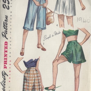1949 Vintage Sewing Pattern W28″ PEDAL PUSHERS & SHORTS (R823)