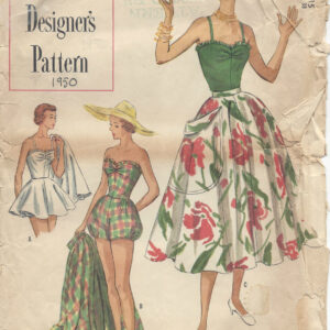 1950 Vintage Sewing Pattern B33 BATHING SUIT & SKIRT (R975)