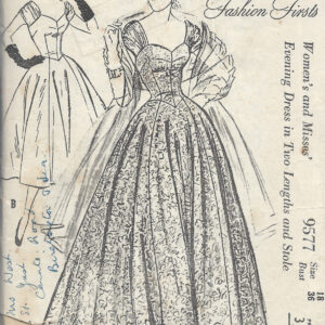 1950s Vintage Sewing Pattern B36 EVENING DRESS & STOLE (E1241)