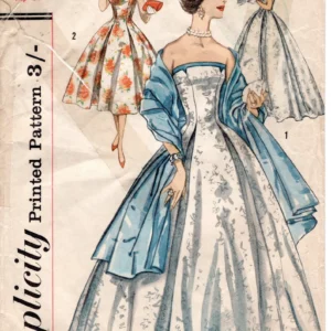 1957 Vintage Sewing Pattern B36″ Evening DRESS & STOLE (2058) Simplicity 2404